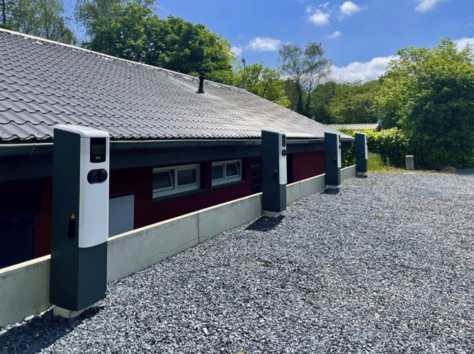 Les bornes de recharge sont situées derrière le bâtiment sanitaire numéro 1.